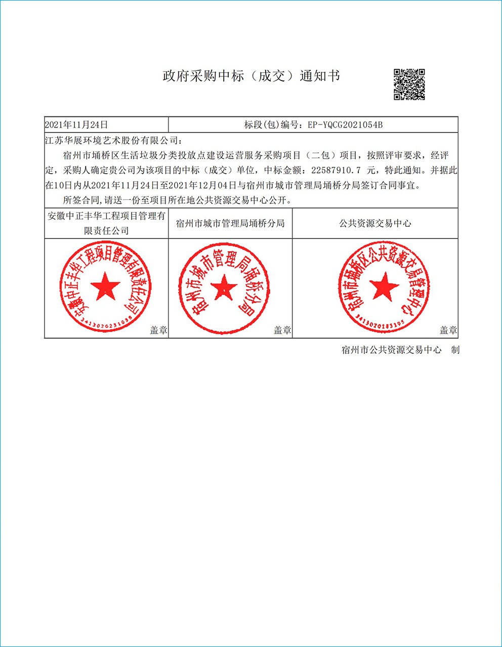 【中標通知】安徽省宿州市埇橋區(qū)生活垃圾分類投放點建設(shè)運營服務(wù)采購項目
